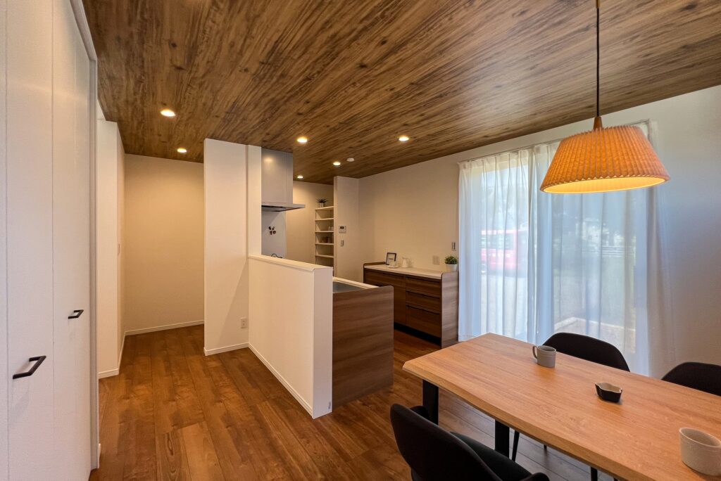 リビングにほどよくつながるダイニングキッチンは横並びにそれぞれを配置